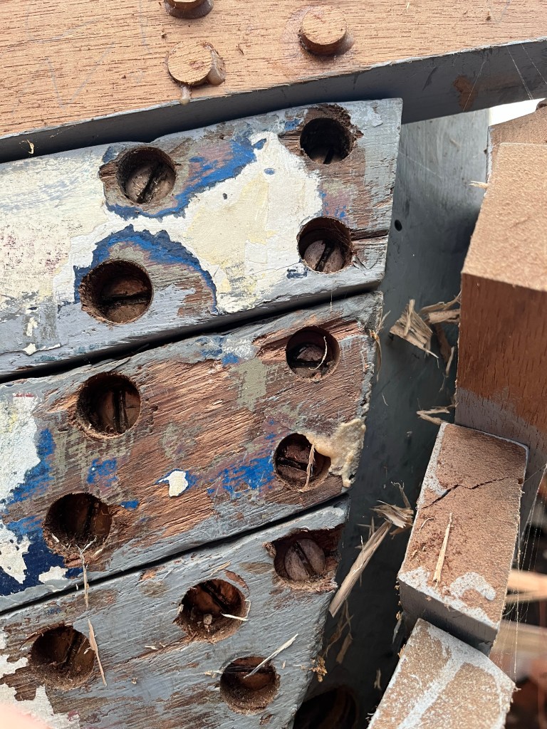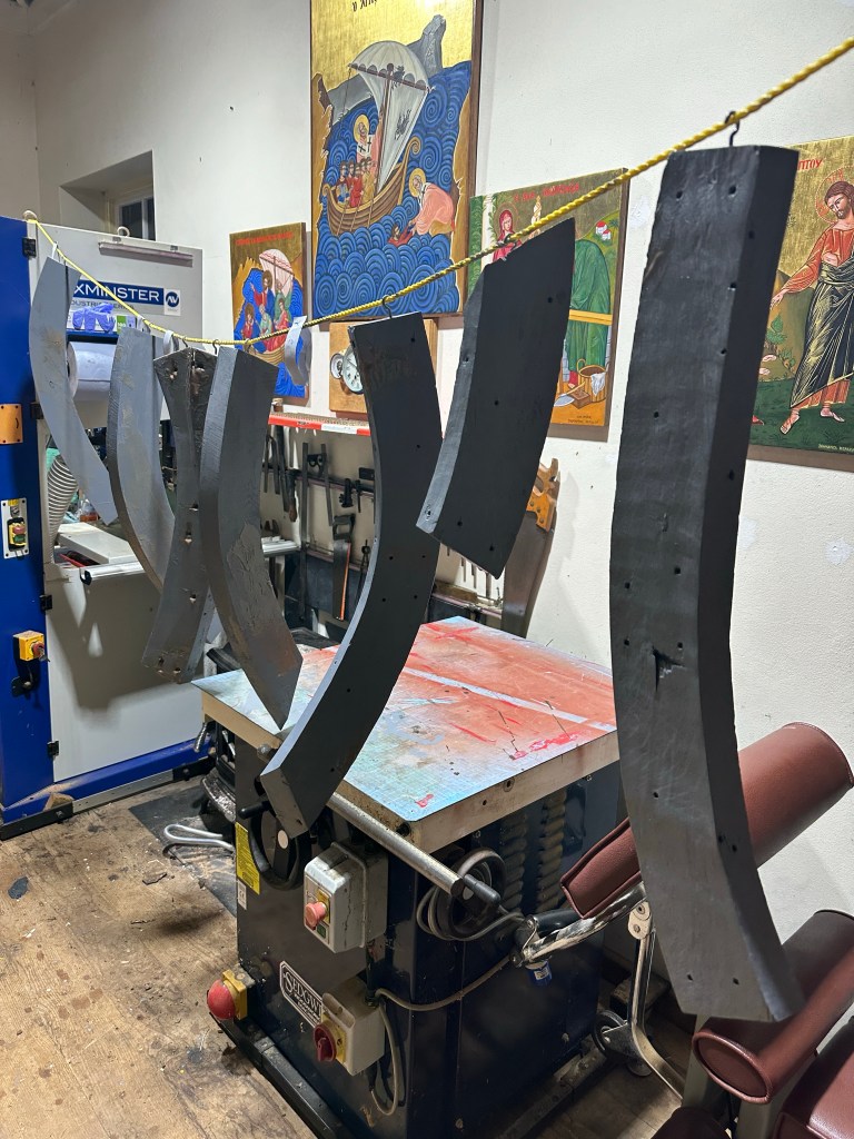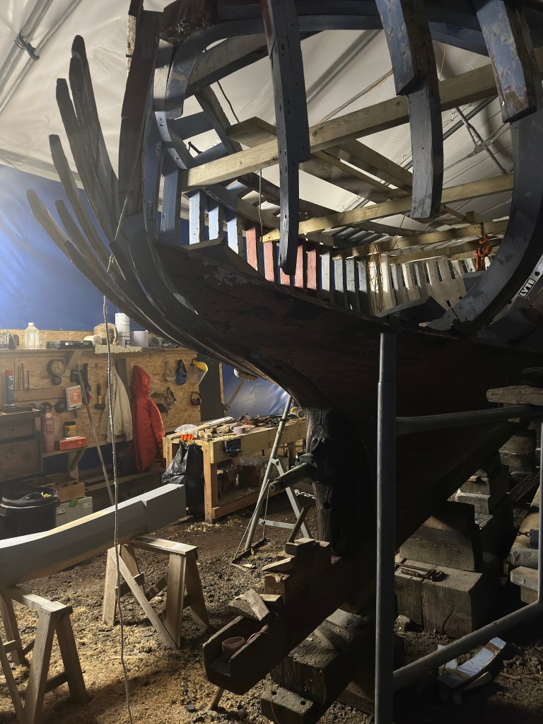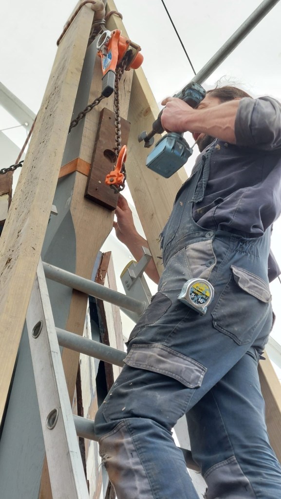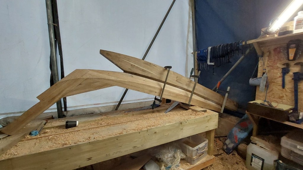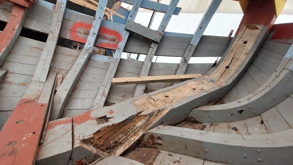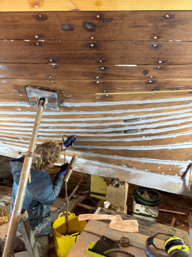 Pure art… isn’t that a beautiful stern?Caulking commences..One more plank to go!L’David fitting the first deck beams before working on the carlings …. Min 500mm around walk way.New waterline The classic vessel and design inspiration Engine repositioning aft…Sailing RigWhere shall I sleep? Reminder of the original build Port side planked up now..The planks are in two sections from 6m and 5m stock. A template is splined from the hull drawn on the stock which is cut out and the edges faired for a tight fit and bevel for caulking.James is working by himself now and getting a plank completed in 2-3 days These aft stern planks are steamed in.Preparing and fairing the frames… L’David back for October… a great opportunity to explore the coastal pubs of the Lizard!This plank had to be replaced again as the scarf needed to be further backJames Pardoe joined the permanent team in October working with L’David.Forward plank scarfed and srew fastenedFirst starboard plank completed and steamed in bag for 2hrs by L’David The 30’ planking arrives… shipwright L’David back on site..Some wider 6m planks arrivingPlanking being ripped from the Iroka treeFrames and centreline repainting by “Dot”L’David’s stern knee The new stem being fitted by SimonAn extensive and deep keel repair with half repaired internally retaining the port face and the starboard side infilled with Iroka.The first plugs fitted to the keel bolt holes.. for plug manufacture see Tool Box section.The keel and hull is being primed with an aluminium underwater wood primerSome say this is a “new build “!Boring the rudder post1/2” Oak laminate for capping the stern post I’m doing most of the frame replacement Sean…Volunteer!A lot of the original apron chunks are from oak sections which have conflicting grain and there are two long through bolts holding it all together. Big cracks on the apron face are original and we will router out a deep face to strengthen the apron before a massive 9’ long knee is laminated to hold it all together.L’David making a template for an apron lamination.It fits!Taking out the apron knee – perhaps this was added as an after thought?The Stern knee showing signs of rotThe steam and stern are winched together moving the knees internally some 10mmWe’re in good wood now..The Stem laminated from OakWe’ve bought a tree from the Congo..ethnically felled Iroka etc and planked 30’ l x 34”w x 1 5/8” thickSo here we go..!Built in the late 1960s Rosey was the largest boat built at the Cove’s shipyard and the last I believe.She was built by Edgar Cove in Salcombe Devon and launched in 1970. Built on a massive Oak backbone, frame and timber construction and planked with 1” Iroka..weighing approximately 12 ton.This is pretty much her original build condition, definitely not an effective sailing vessel but a very good steamer at 6knots, 1100rpm, 1 gal/hr come “hell or high water”!Ex works Wollgast N Germany following an extensive refit in 1998.John F Yeoman left, myself middle and Ken Painter my Dad on the right in 1985. John sadly died two years later and I lost my mentor and along with my father a great friend who supported my education in the Army before starting a 25 year career at Foster Yeoman.