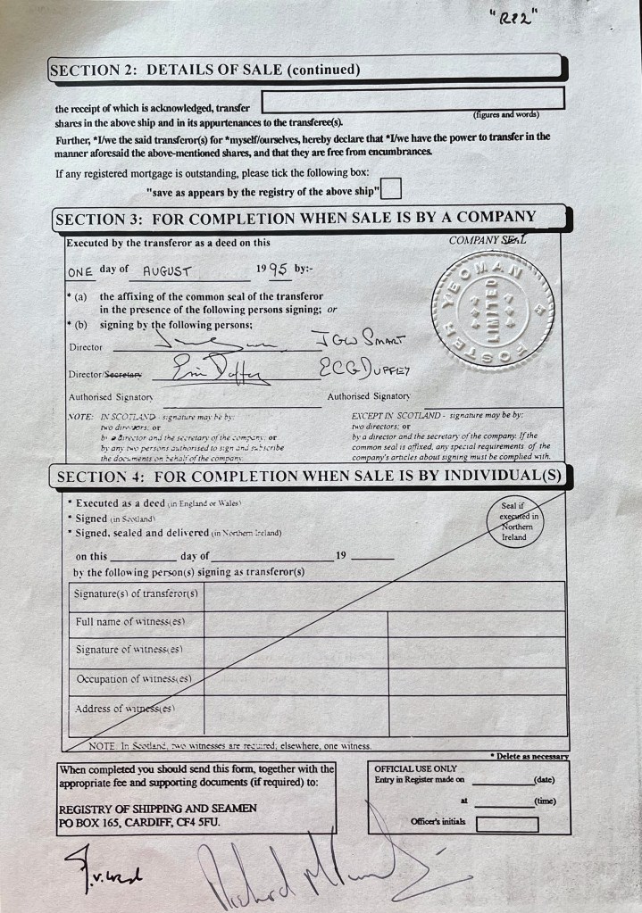 After John’s untimely death Rosey remained in Scotland until I agreed with Angela Yeoman to take her over, in 1995 and base her out of Berlin and Sczcecin on the Baltic.